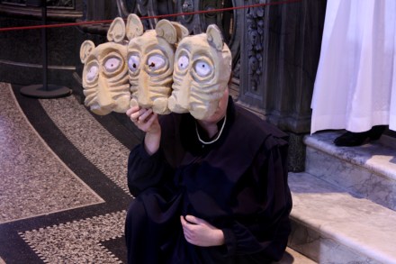 So ‘this medieval opera’ takes it narrative from the Bible, has clerics and choristers as actors, and the cathedral itself as stage and scenery. Most likely, the Bishop’s seat became the Throne for King Belshazzar.