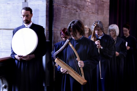 The Egerton rubric also gives ‘stage directions’ for many other actions that would be unthinkable within the normal order of the liturgy. So we may well ask: in an enactment that includes pretending to kill King Belshazzar, a monk dressing up as the Queen, and Counsellors being utterly devoured by Lions, would it be utterly out of the question for King Darius’ harpers – we know they are there – actually to play? The notion that the harps are silent stage props seems out of keeping with the straightforward and energetic (one might say, enargetic) story-telling required by the rubric throughout.