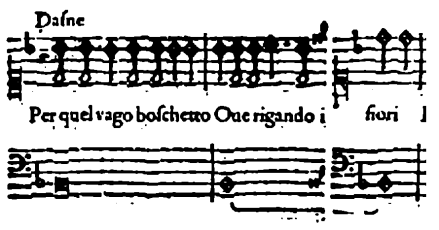 ALK: I searched in vain for this exact melody in Peri’s and Caccini’s settings of Euridice. However, Doni is not wrong, there are many, many figures at the beginning of phrases that sound just like this in Peri. It is indeed a recognisable phrase-opening cliché, in the easy-flowing pastoral dialogues that Peri contrasts against extended narrations and passionate speeches, fitting very well with Doni’s three categories. In particular, it is a very close match to the first notes of Peri’s Act I, and this might well be what Doni was remembering.