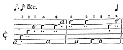 In describing the character – we might well say, Humour – of the key of B major ( not Bb!), rarely encountered in 17th-century lute-music, Mace uses for this Key the words ‘Noble, Brave and Brisk-Lively’. This usage reminds us that, for Mace, the words Brisk and Lively convey character, not merely speed. It would be nonsense to write that B major is a ‘fast key’, but the quality of Brisk-Liveliness is shown by the dotted notes that Mace uses in the music example that follows.